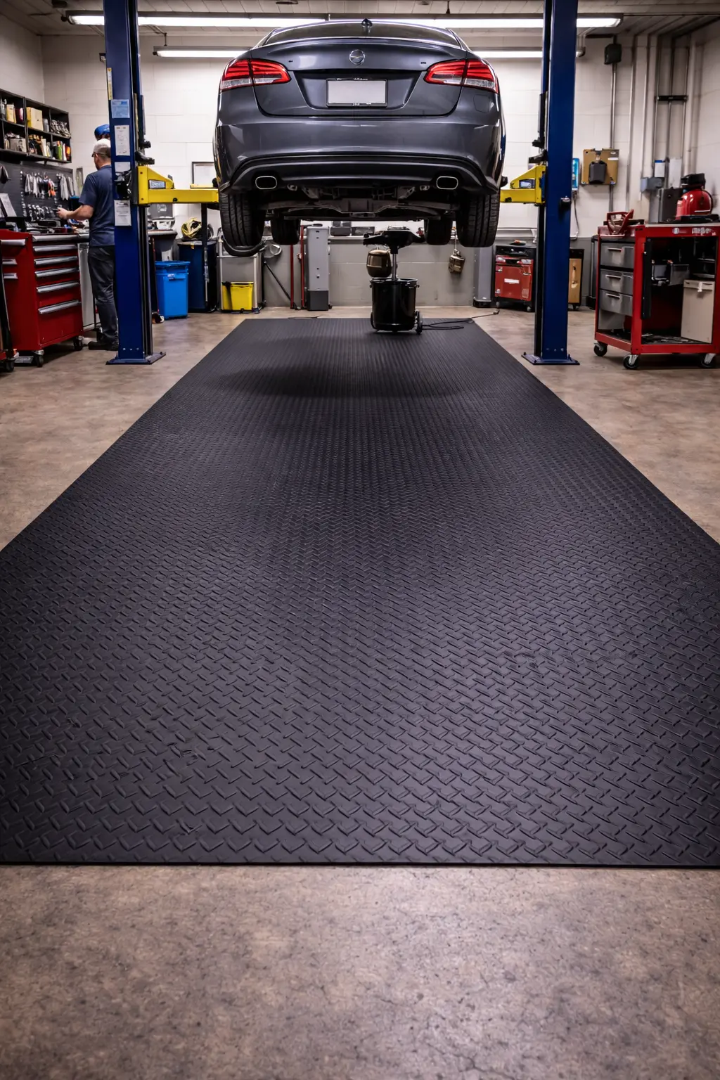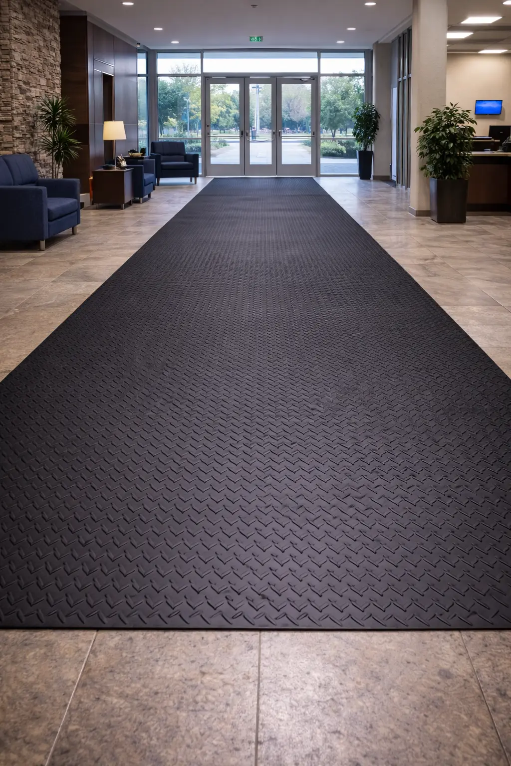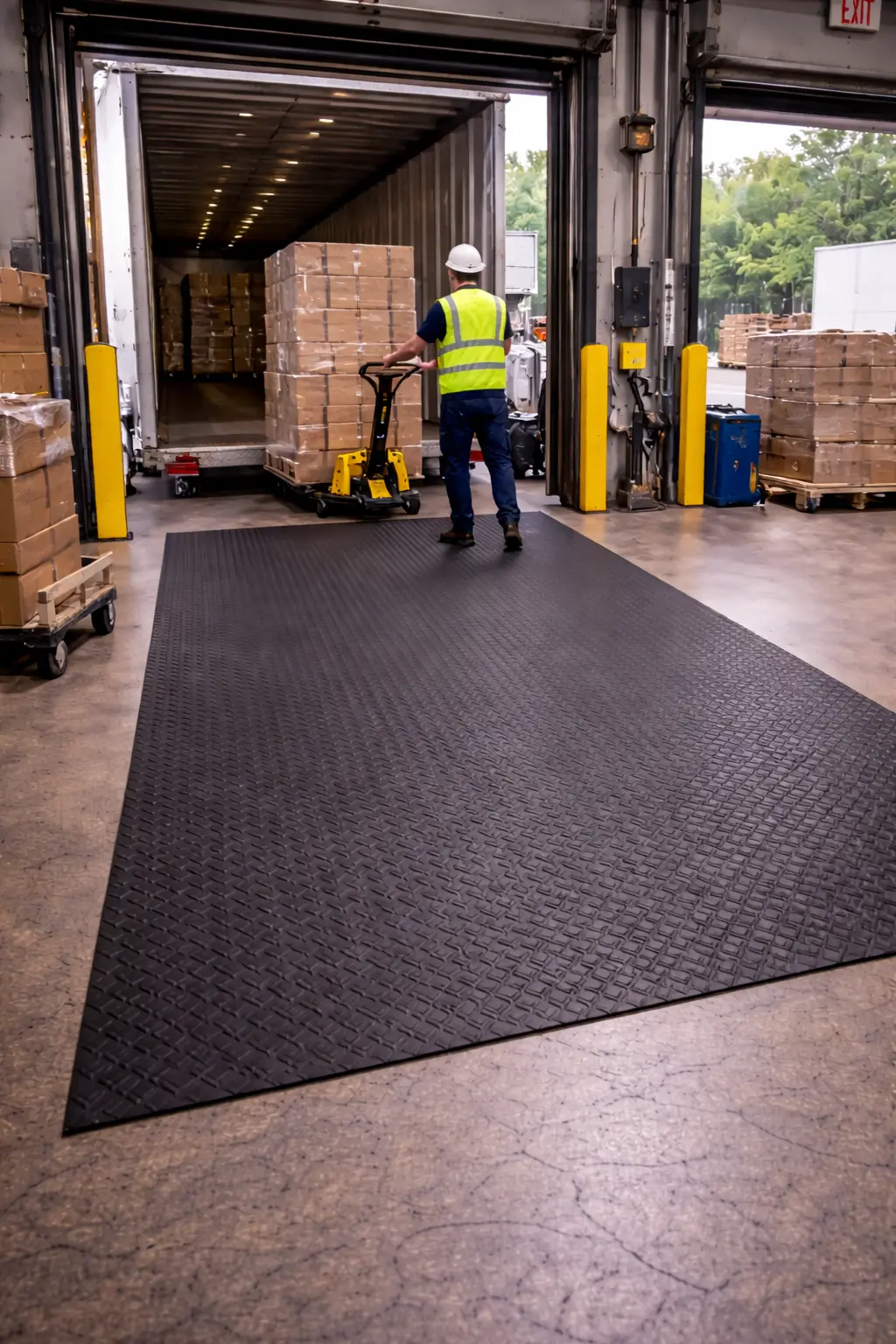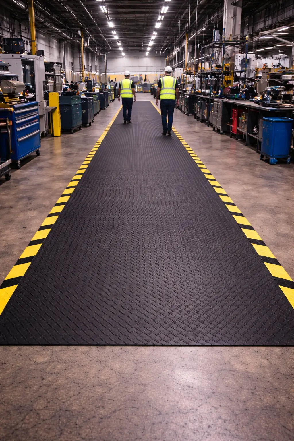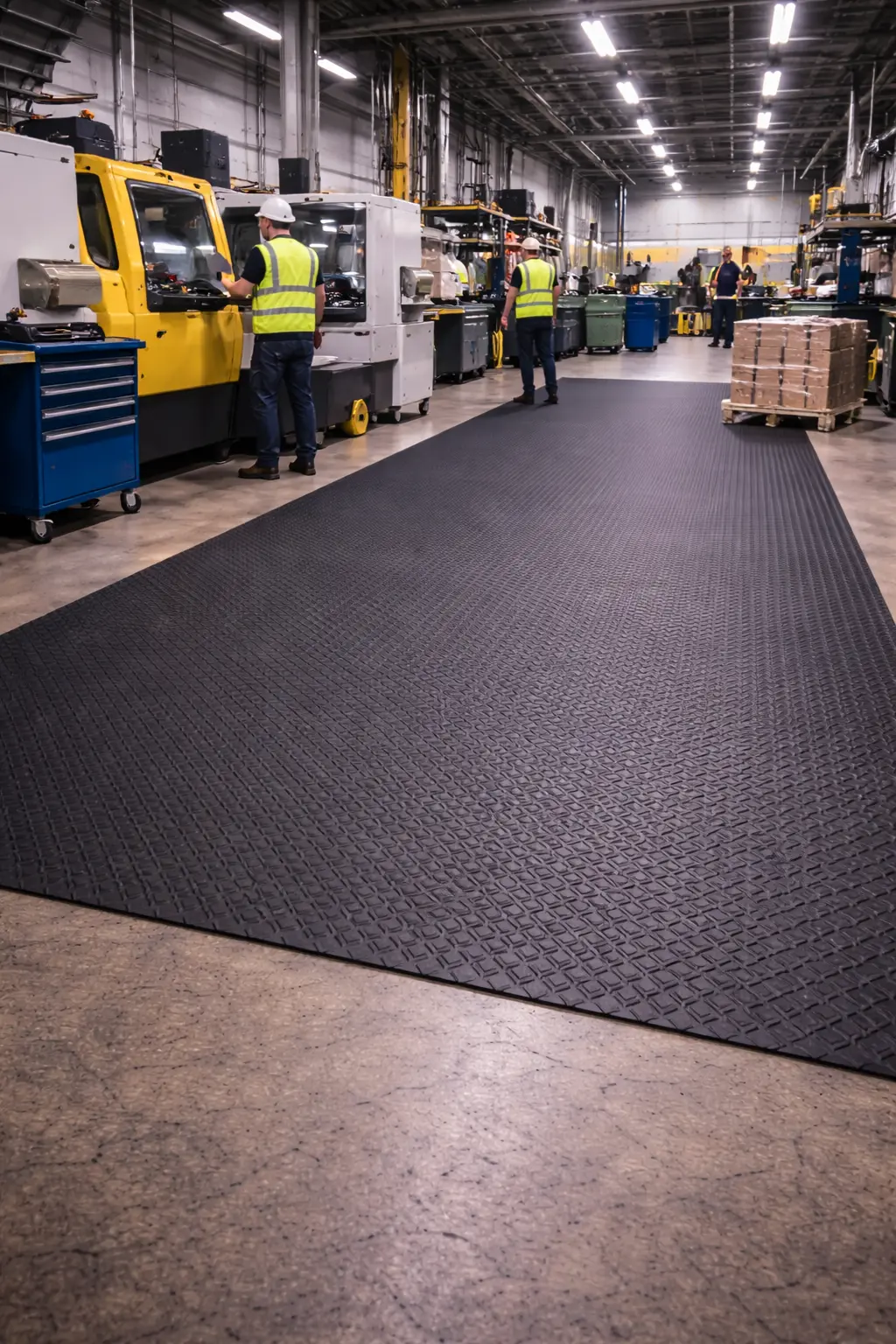The checker pattern improves traction and helps reduce the risk of slipping in busy workplaces. These mats also provide strong floor protection and long-lasting durability in industrial environments.