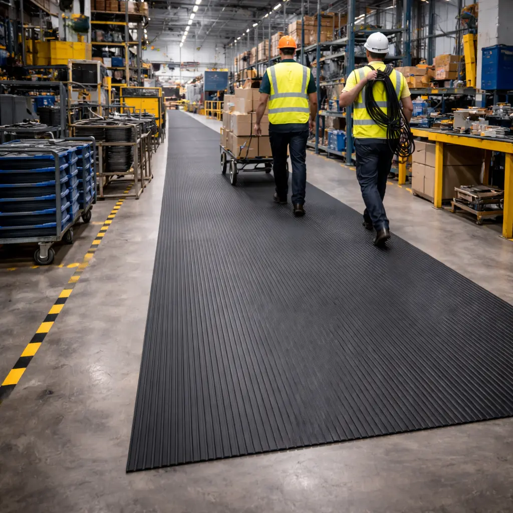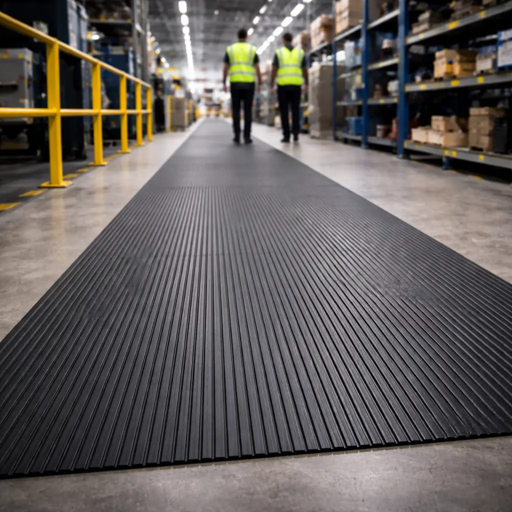 Manufactured from high-quality rubber compounds, ribbed rubber mats offer long-lasting durability and reliable performance in high-traffic areas. Their design also helps trap dirt and moisture, keeping workspaces cleaner and safer.